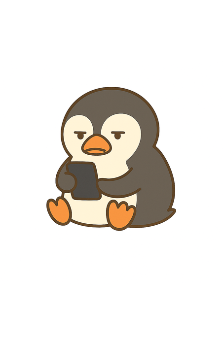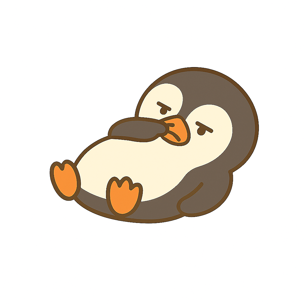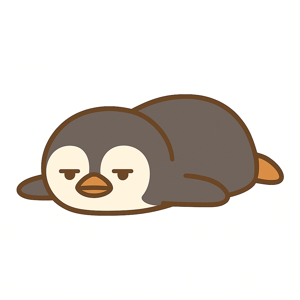 덤담이는 무심한 표정이 시그니처인 펭귄 캐릭터로, 반쯤 감긴 눈과 힘 빠진 리액션이 매력 포인트입니다.